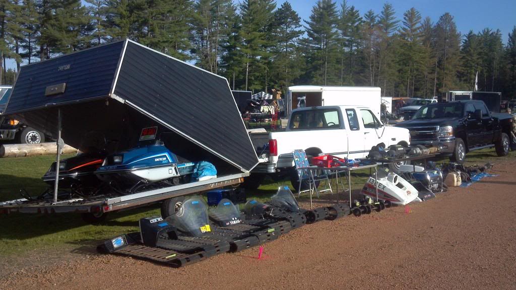 I hope to get my usual spot in the shade behind the left field fence.  I'm bringing the easy-up & chairs as well as the grill.  Stop in and say hello.  I gave up my rented storage garage, so I've got several sleds to sell:  1980 Arctic Cat Trail Cat 440 electric start, 1971 Panther with 399 Kohler & electric start, 1973 Panther 340, and a 1980 Pantera 500.  I'll also be bringing my plastic tubs of carbs, electrical and engine parts.  I still have a 440 hirth motor to unload.  I'll also have a few snowmobile suits and other trinkets.  I hope the weather is better this year!!